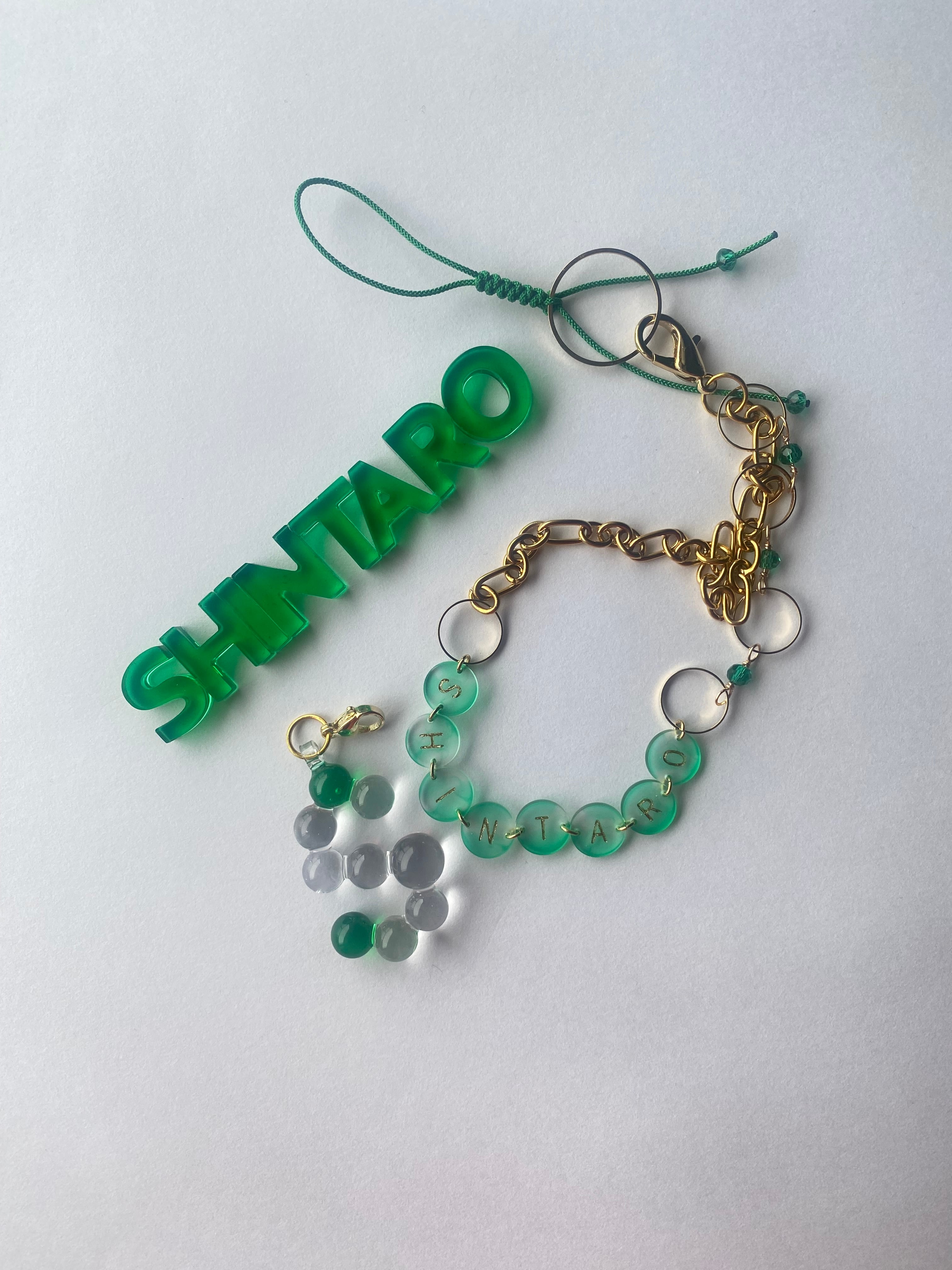 イニシャルチャームは他商品の文字の初めの文字で作成します。